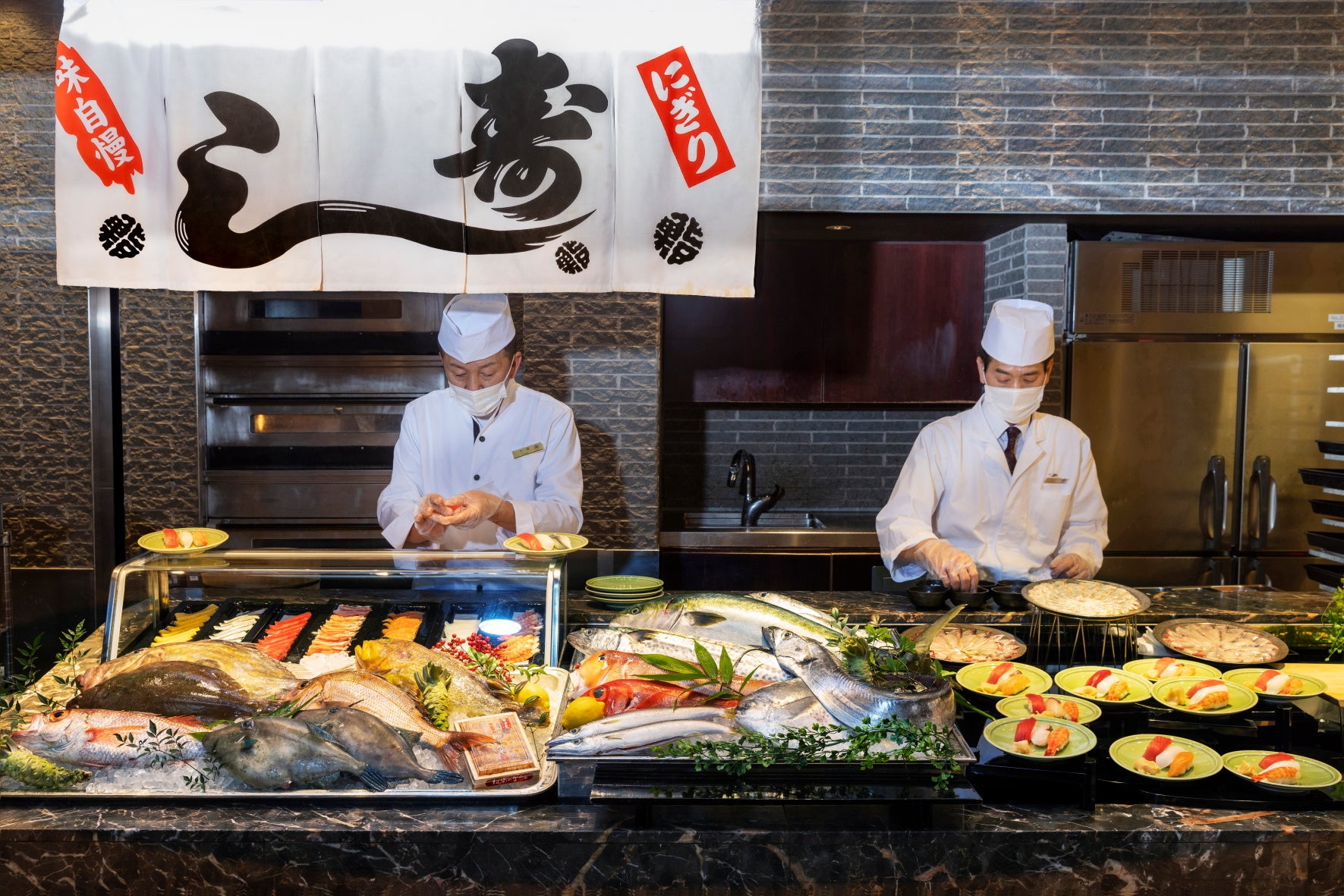 人気のディナー限定「握り寿司コーナー」がパワーアップ。寿司ネタが日替わりに。