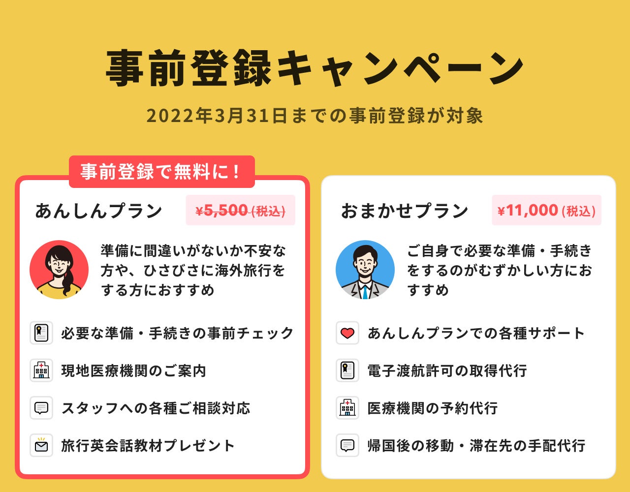 ※事前登録者は、『こころから』での海外旅行予約時に「あんしんプラン」を無料でお選びいただけます。