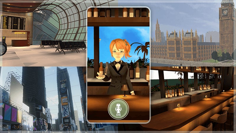 ゲーム感覚で楽しくインタラクティブな学習ができる、AIを活用したロールプレイング型留学空間を提供します。この空間では、現実で遭遇しうる英会話シチュエーションが空間ごと3Dで再現されたバーチャルシーンに没入して、AIを相手取った会話を介してミッションをクリアしていく新しい学習体験が利用可能となります。