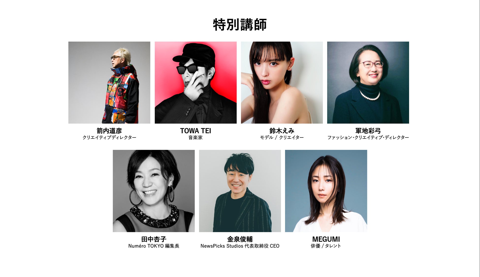 箭内道彦(クリエイティブディレクター)、TOWA TEI(音楽家)、鈴木えみ(モデル/クリエイター)、田中杏子(Numéro TOKYO編集長)、軍地彩弓(編集者)、金泉俊輔(NewsPicks Studios代表取締役CEO)、MEGUMI(俳優/タレント)
