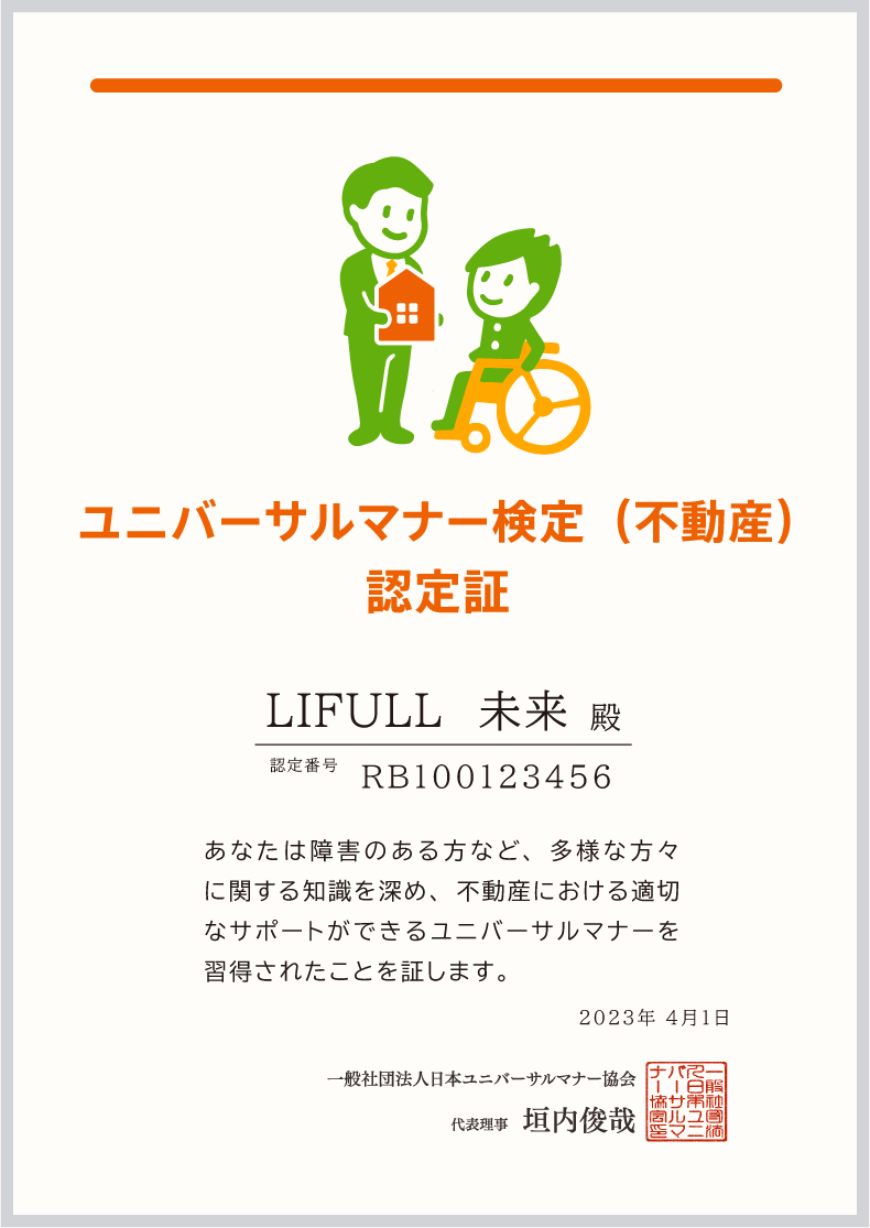 株式会社ミライロ(本社:大阪府大阪市、代表取締役社長:垣内俊哉)は誰もが安心して家探しができる社会を目指して、株式会社LIFULL(本社:東京都千代田区、代表取締役社長:井上高志、以下「LIFULL」)が運営する不動産・住宅情報サービス「LIFULL HOME'S」と、不動産事業者実務におけるユニバーサルマナーを体系的に学べる「ユニバーサルマナー検定(不動産)」を共同開発いたしました。「LIFULL HOME'S」が取り組む住宅弱者問題の解決を目指す「FRIENDLY DOOR(フレンドリードア)」事業と連携したもので、不動産業界に向けたユニバーサルマナー検定の開発は初めての試みとなります。検定受講者には、ユニバーサルマナー検定(不動産)のロゴマークが入った認定証が配布されます。