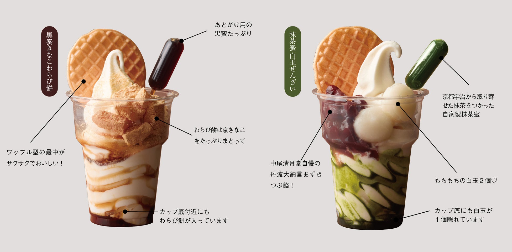 従来品のひみつの黒蜜のおいしさがパフェスタイルに進化!