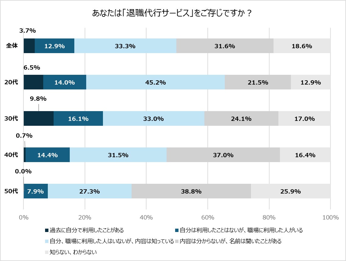 退職代行サービスの利用経験は3.7%、年代により大きな差