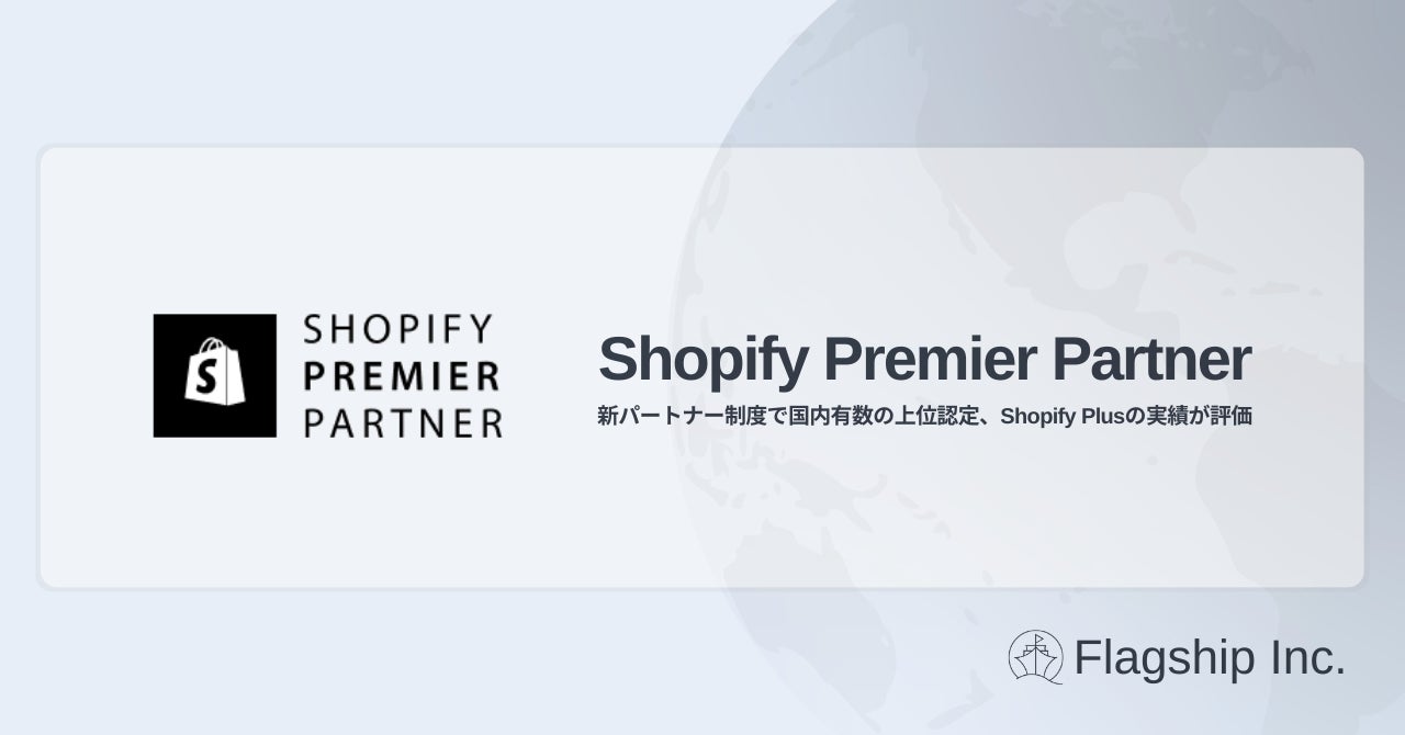 フラッグシップ株式会社(本社:東京都千代田区、代表取締役:神馬光滋、以下フラッグシップ)は、グローバルコマースをリードするShopify(ショッピファイ)の新パートナープログラムにおいて、Premierパートナーに認定されました。Premierパートナーは2025年1月より開始された新プログラムにおける上位の認定区分であり、国内では数社のみが選出されています。