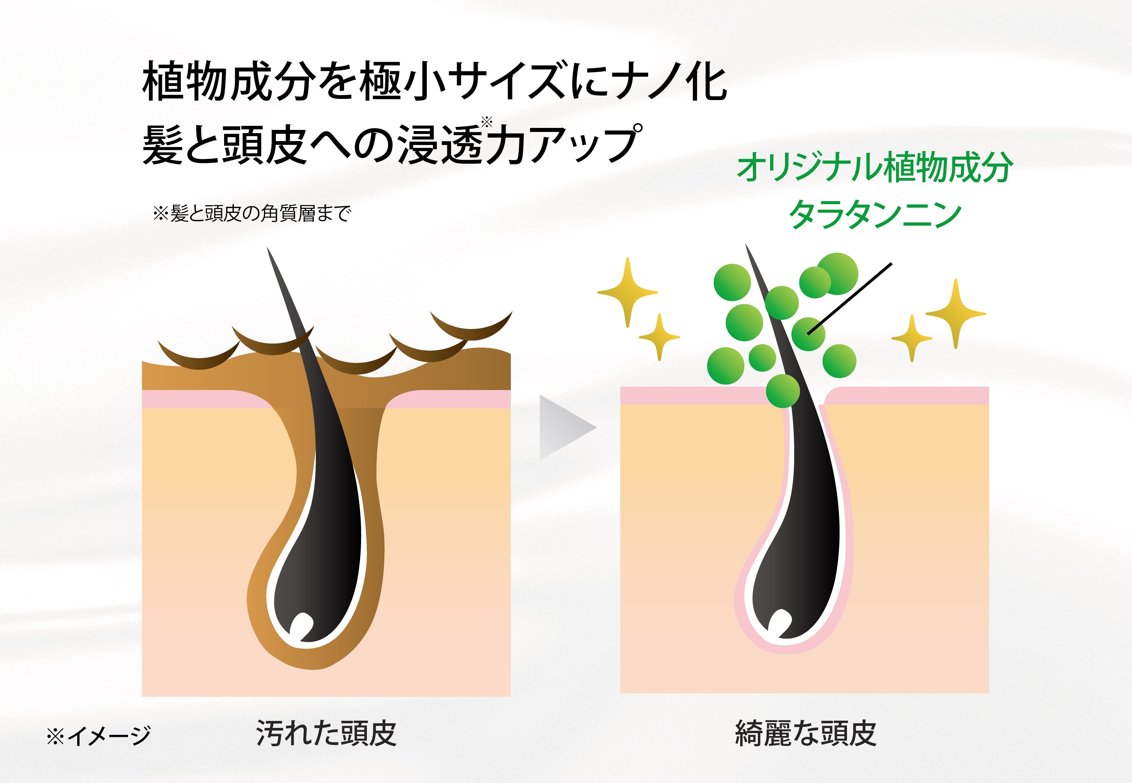 また、SUNA製品にはメラニンの生産を促進する効果があるオリジナル成分の「タラタンニン*」を配合し、SNP技術で有効成分を毛根までダイレクトに浸透・吸収させることを可能としました。