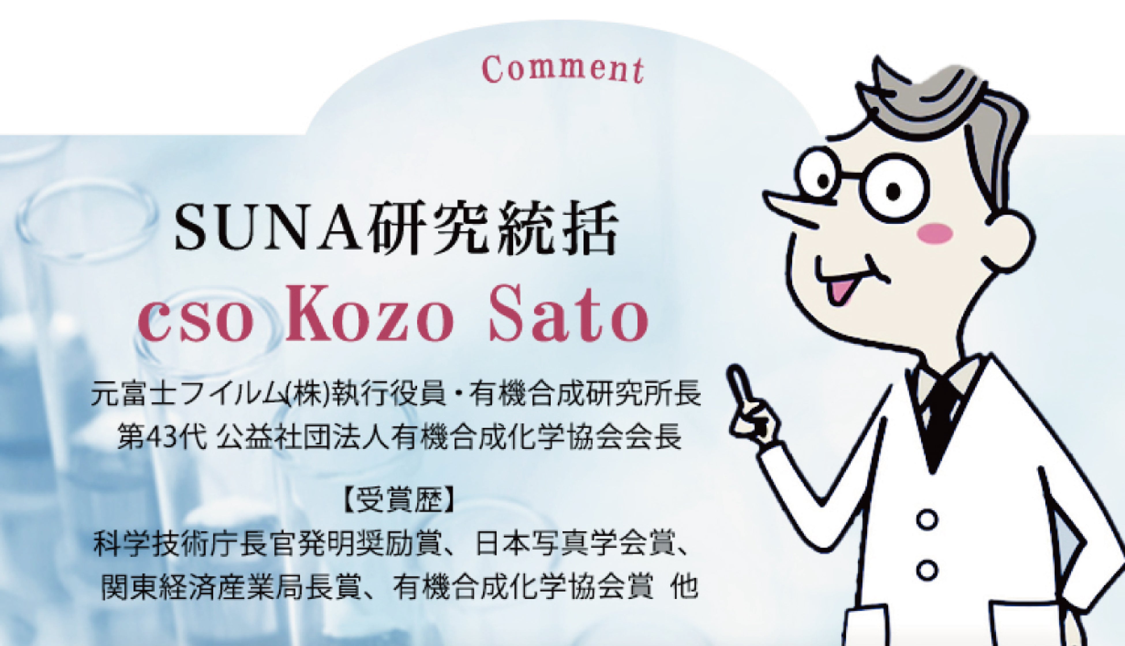 40年に渡り携わってきた有機化学の高度な技術を、多くの方の悩みを解決するような製品作りに活かし、社会貢献の可能性を探りたい、これがスーナを開発した私たちの想いです。是非この機会にお試し下さい。