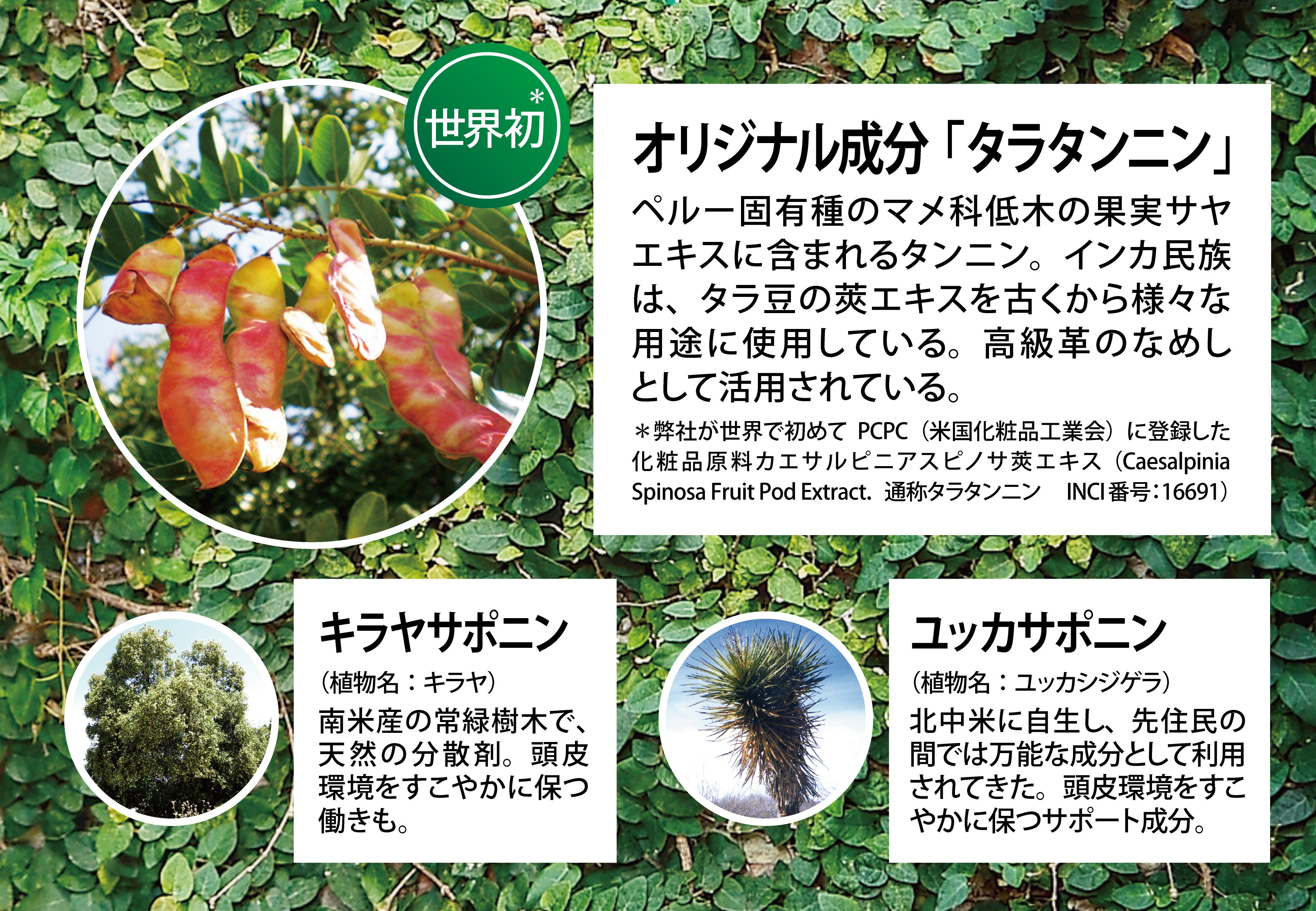 ※1 ペルー固有種のマメ科低木の果実サヤエキスに含まれているタンニン:保湿成分