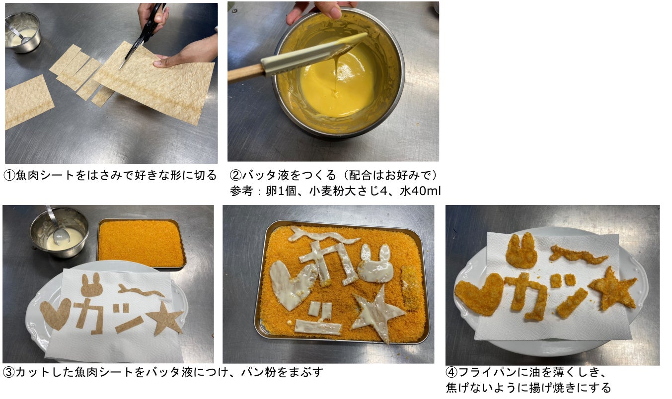 ①ビッグカツの肉(お魚シート)をハサミで好きな形に切る
