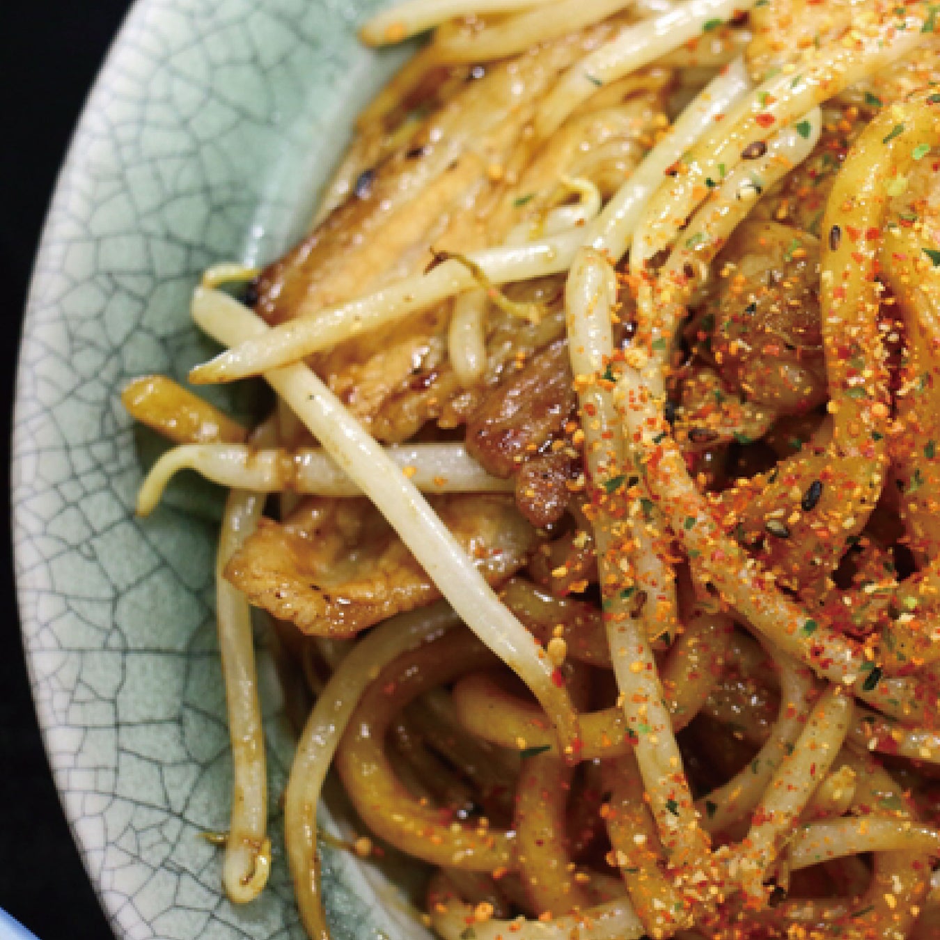 食べ応えと腹持ちを良くする極太麺と、うまみたっぷりの濃厚ソース、そして豚肉ともやしのシンプルな具。一味唐辛子を振りかけるのも通。