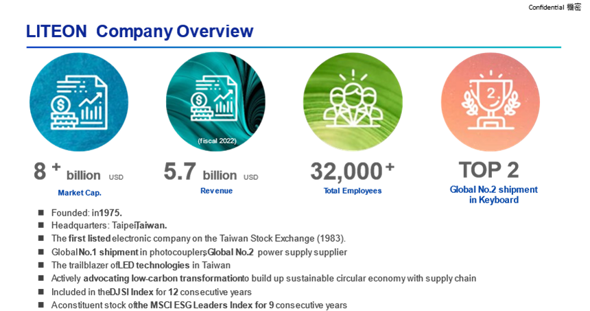 Founded in 1975, LITEON Technology is a world-leading provider of opto-semiconductor, power supply management and key electronic products with strong global ecosystem and manufacturing facilities. LITEON provides products extensively utilized in fields such as cloud computing, automotive electronics, optoelectronic semiconductors, 5G, AIoT, information and communication technology, and consumer electronics.