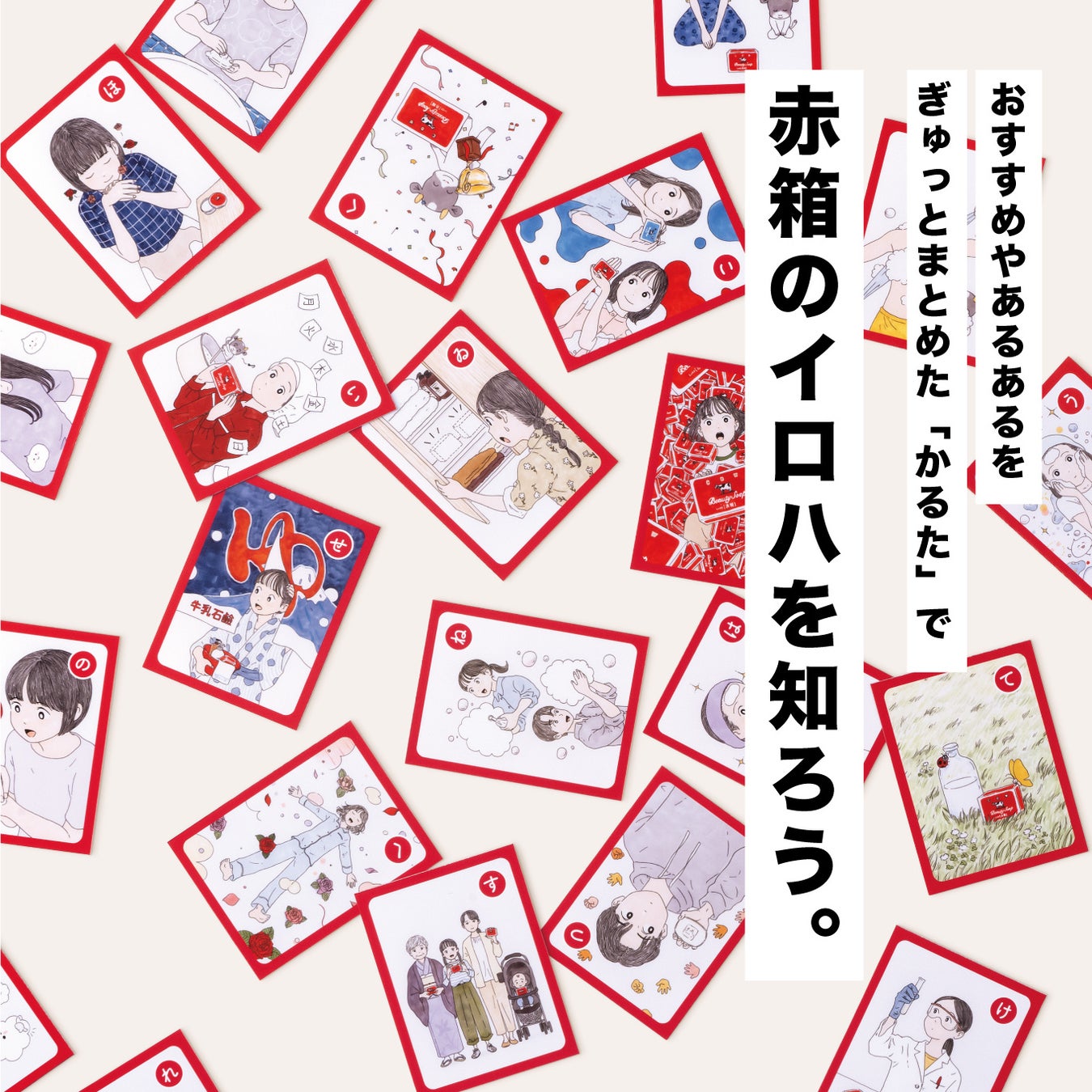 赤箱の特徴やおすすめポイント、赤箱あるあるなど赤箱の魅力を知ってもらうために47種類のイロハかるたをつくりました。WEBでも公開しておりますのでぜひご覧ください。
