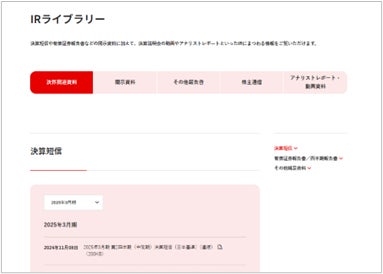 今まで複数ページに存在していたIR資料を「IRライブラリー」として1ヵ所へまとめることで、求める情報を素早く入手できます。また、最新資料を一括でダウンロードできる機能も追加しました。