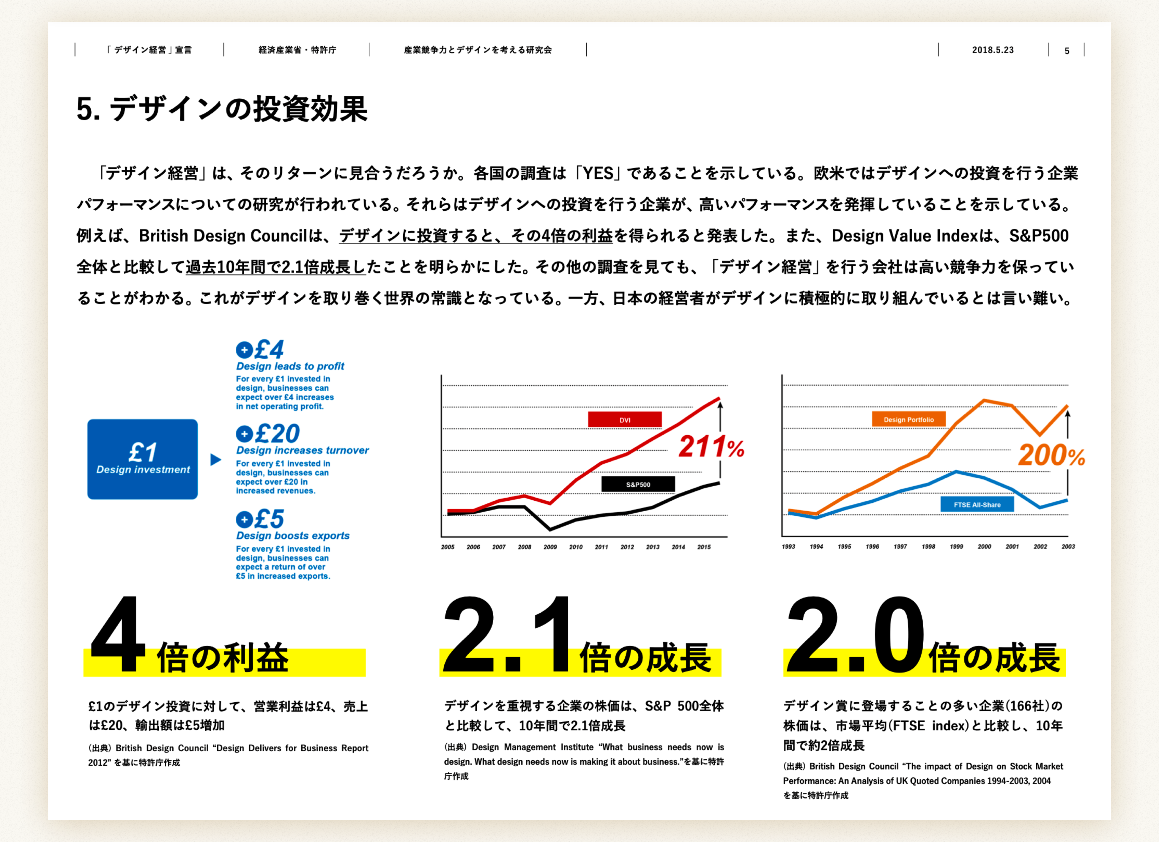 引用元:「デザイン経営」宣言 ( https://www.meti.go.jp/report/whitepaper/data/pdf/20180523001_01.pdf )