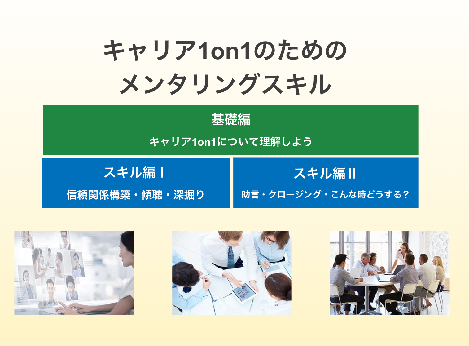 内容:部下を育成する管理職、リーダーに向け、キャリア1on1について、基礎からマインド、スキルまでの解説をします。
