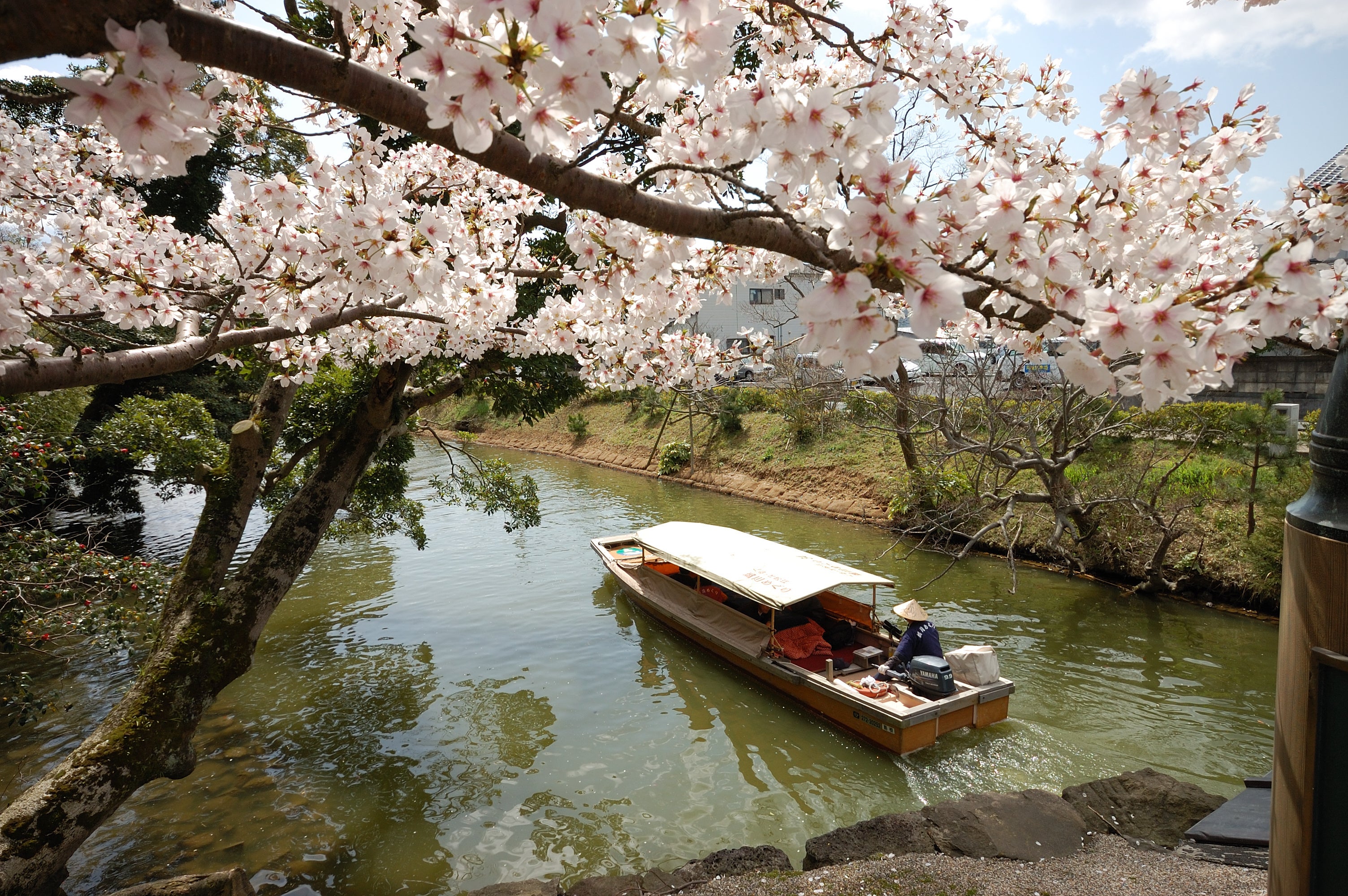 水の都、松江の象徴でもある松江城を取り囲む堀川をめぐる遊覧船です。春には麗かな日差しの中、桜を楽しみながら歴史ある街並みをゆったり楽しむことができます。松江城周辺に、観光に便利な3つの乗り場があります。