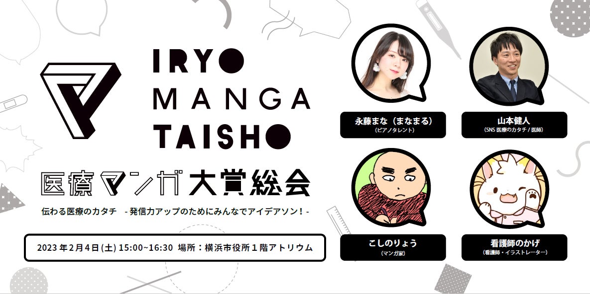 今年度で4回目を迎えた「医療マンガ大賞」について、審査員や今までの受賞者の皆さんと共に令和元年からの取組を振り返ります。また、YouTube等のSNSやTV出演等で活躍している、まなまるさん(ピアノタレント)も参加して、これからの“医療広報”の伝え方を新たな視点で考えるイベントを開催します。