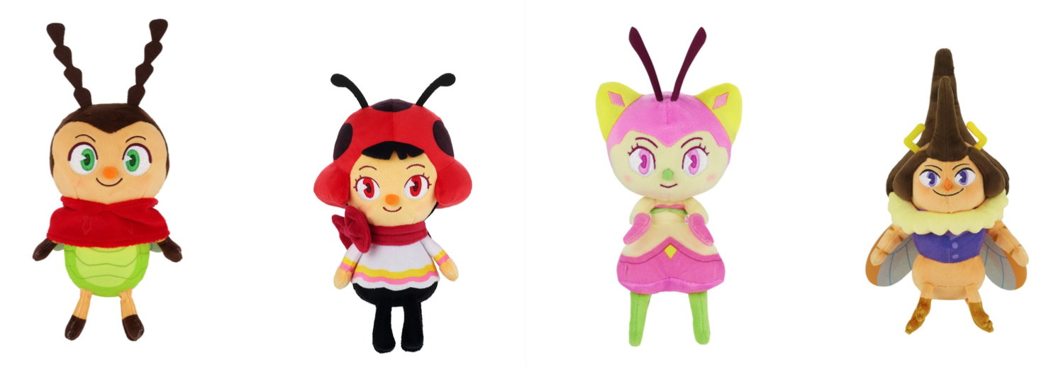 インセクトランドのキャラクターがぬいぐるみになって登場!2022年4月放送開始予定のアニメに登場し、絵本で人気のアダム、ミア、シャルロット、ガブリエルです。個性豊かなキャラクターたちの特徴にもこだわった商品です。
