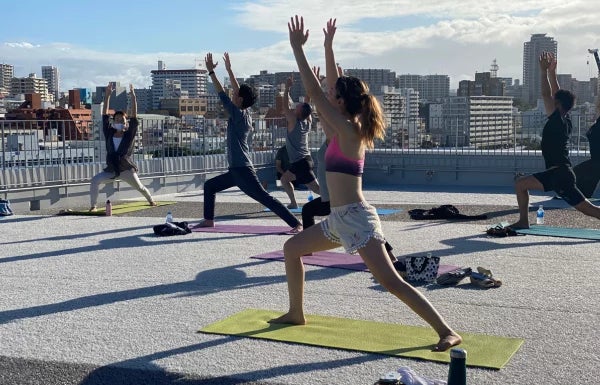 ホテル屋上では、潮風や太陽といった地球の恵みを感じながら、地球環境やサステナブルをテーマにしたヨガを行います。