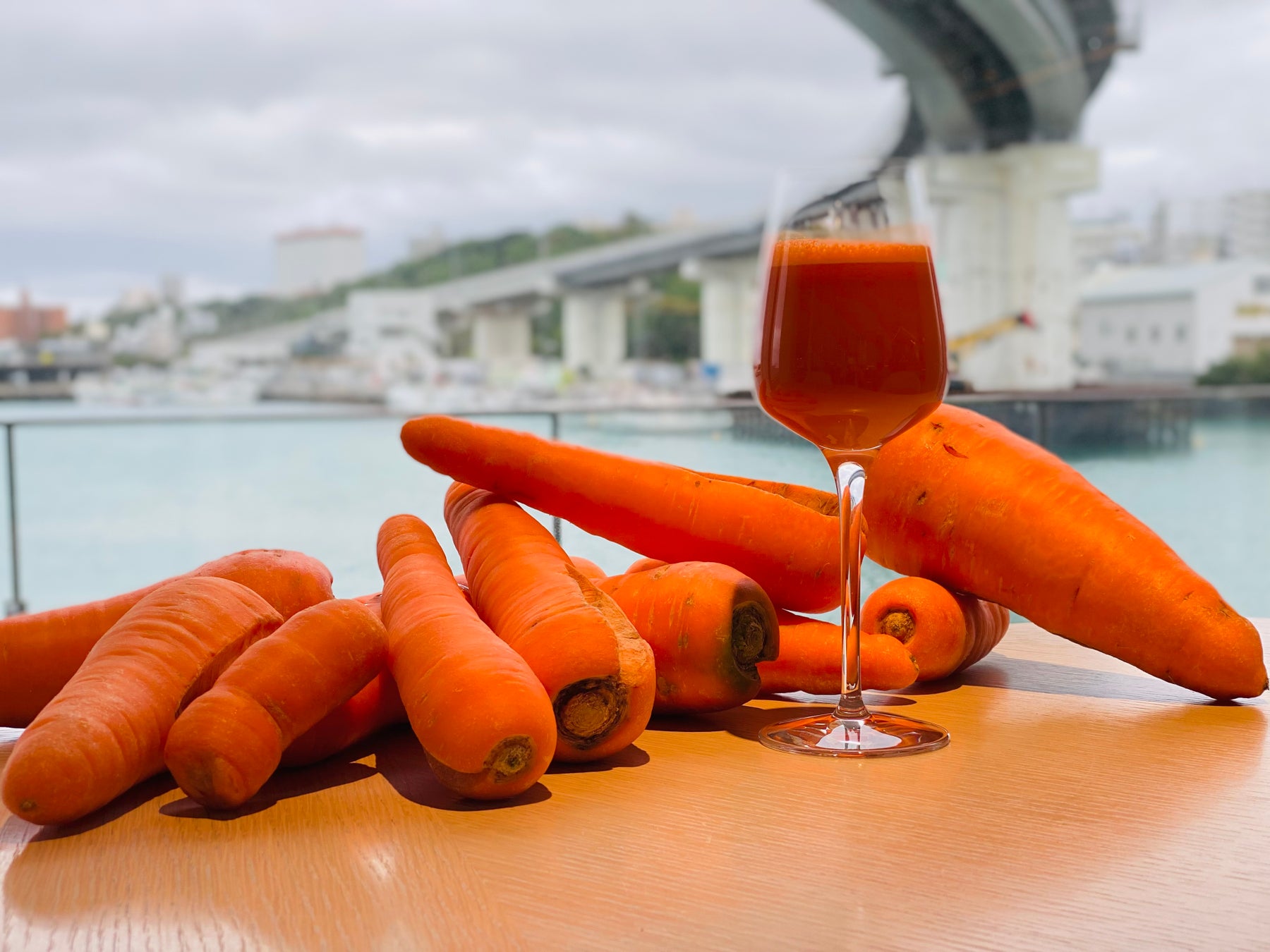 ・地産地消オリジナルドリンク 美らキャロット生絞りジュース、ティーソーダ1杯500円