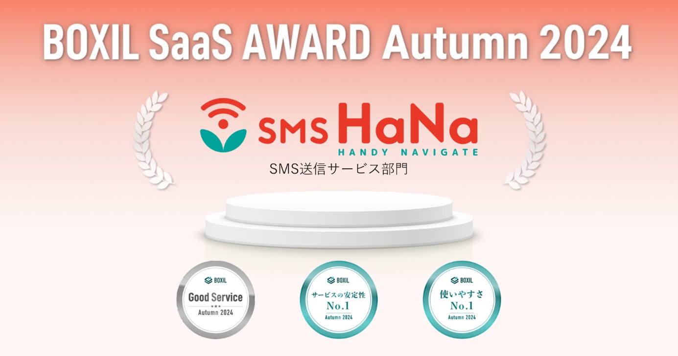 SMS HaNa、「BOXIL SaaS AWARD Autumn 2024」SMS送信サービス部門で「Good Service」「サービスの安定性No.1」「使いやすさNo.1」 に選出