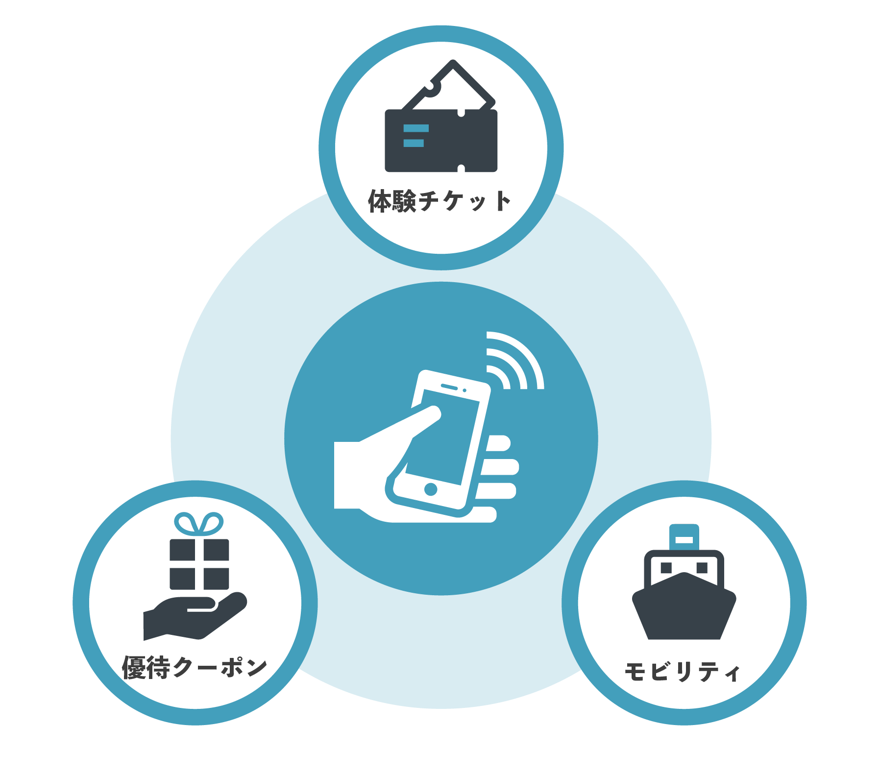 アフターコロナを見据えて三密問題などに対応し、安心して旅行を楽しめるサポートをすべく、瀬戸内洋上都市ビジョン協議会をはじめとして国内各地でデジタル・ソリューションの実証を重ねた「Horai 周遊パス」機能を2021年より試験的に導入しました。非接触技術のひとつであるNFC(近距離無線通信規格)を活用すると同時に、密が起きないよう人の流れを分散する「Horai 周遊パス」によって、アフターコロナを見据えての安心した旅行をサポートします。「Horai 周遊パス」は、体験チケット、優待クーポン、モビリティなどユーザーがの行きたい地域のサービスを一括で購入し、ユーザー毎に合わせて使うことができる仕組みを目指しています。