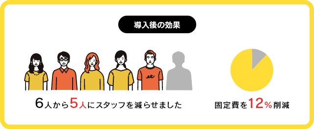 お問い合わせから導入まで「9営業日」という超短期間でのシステム導入でしたが、お客様にとって「見やすいか?」「使いやすいか?」「注文の流れは正しいか?」などを判断し、メニュー作成を行うことで人手を6人から5人へと1名減らすことができ、固定費の12%を削減できました。