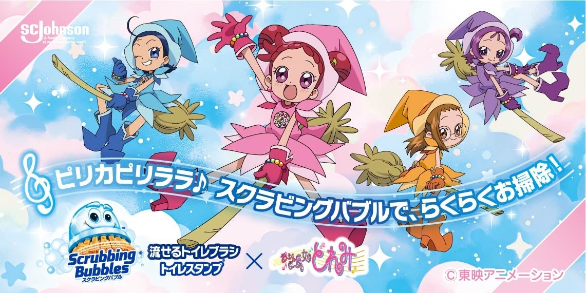 ジョンソン株式会社(本社:横浜市/社長:鈴木崇平)は、住居用クリーナーブランド「スクラビングバブル」とアニメ「おジャ魔女どれみ」とコラボした、オリジナルグッズ付き限定デザインのスペシャルパックを数量限定で2026年3月1日から順次発売いたします。今回のスペシャルパックは、スクラビングバブルブランドの人気アイテム「流せるトイレブラシ」と「トイレスタンプ」を採用した特別なコラボセットです。