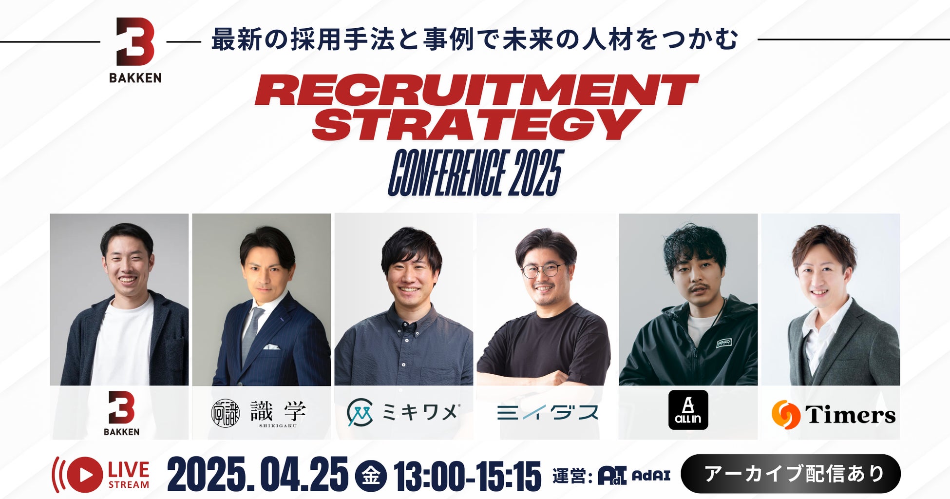 BAKKEN/識学/ミキワメ/ミイダス/オールイン/Timers 合同カンファレンス:最新の採用手法と事例で未来の人材をつかむ【4月25日13時開催】