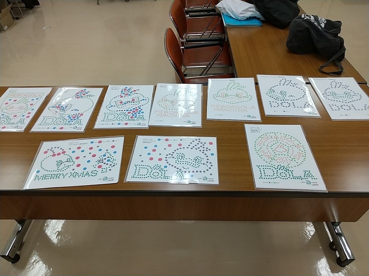 外での作業が終わったら最後は室内で作品展を開催しました。ドーラくん竹灯籠の