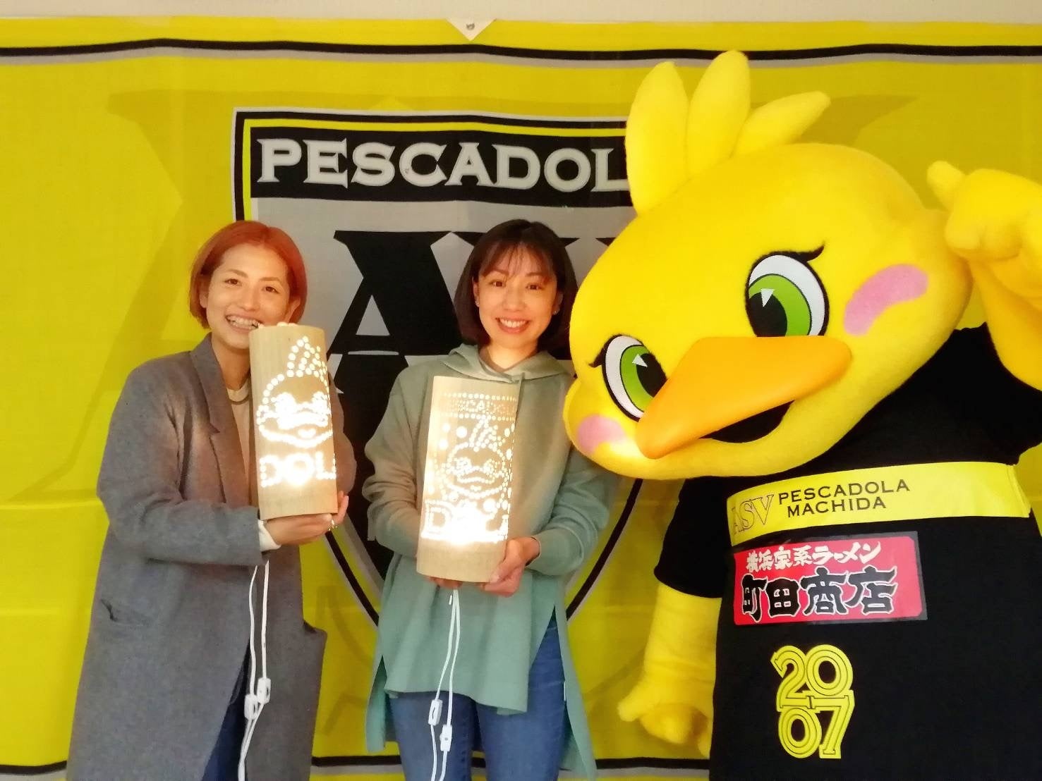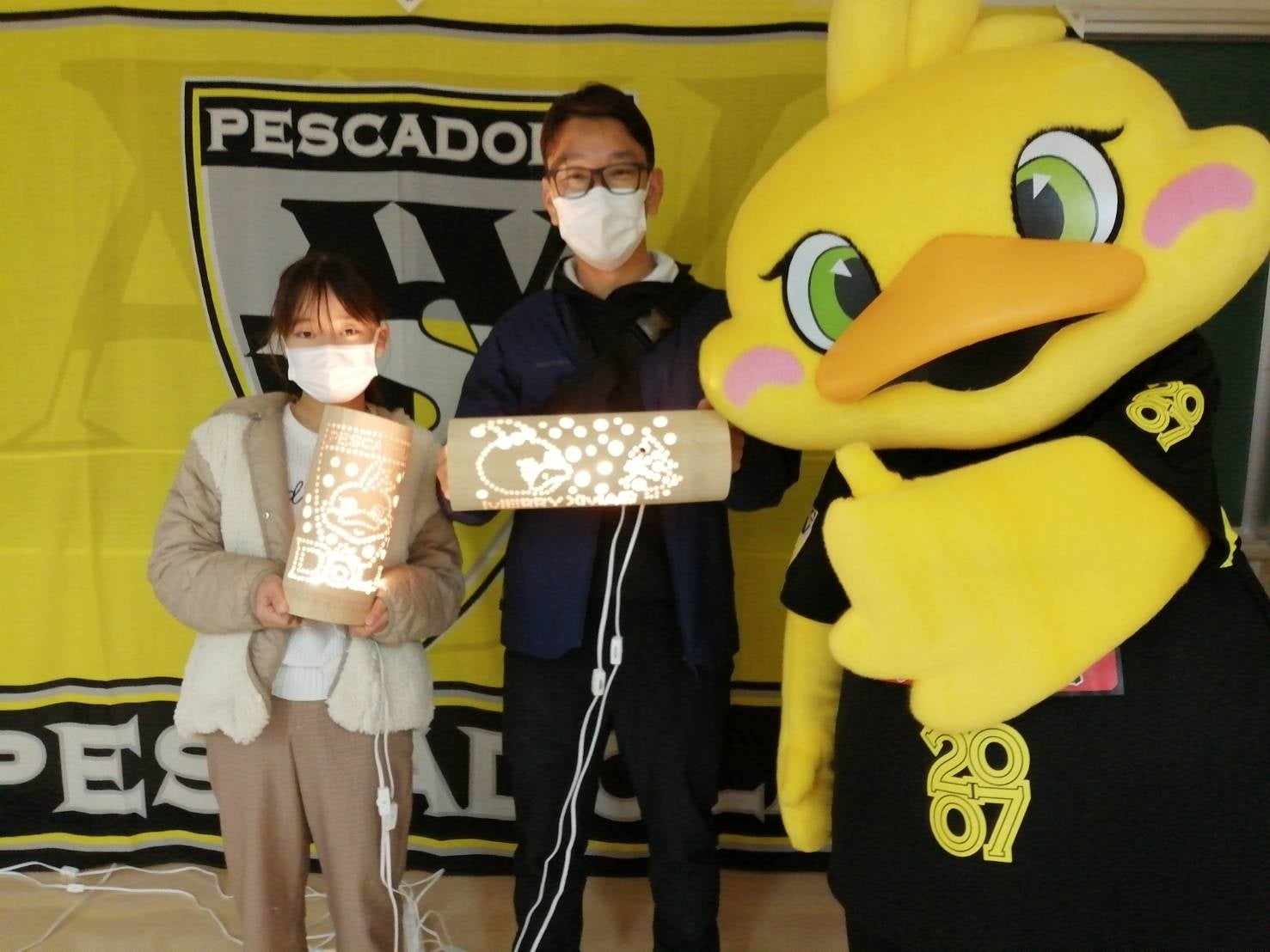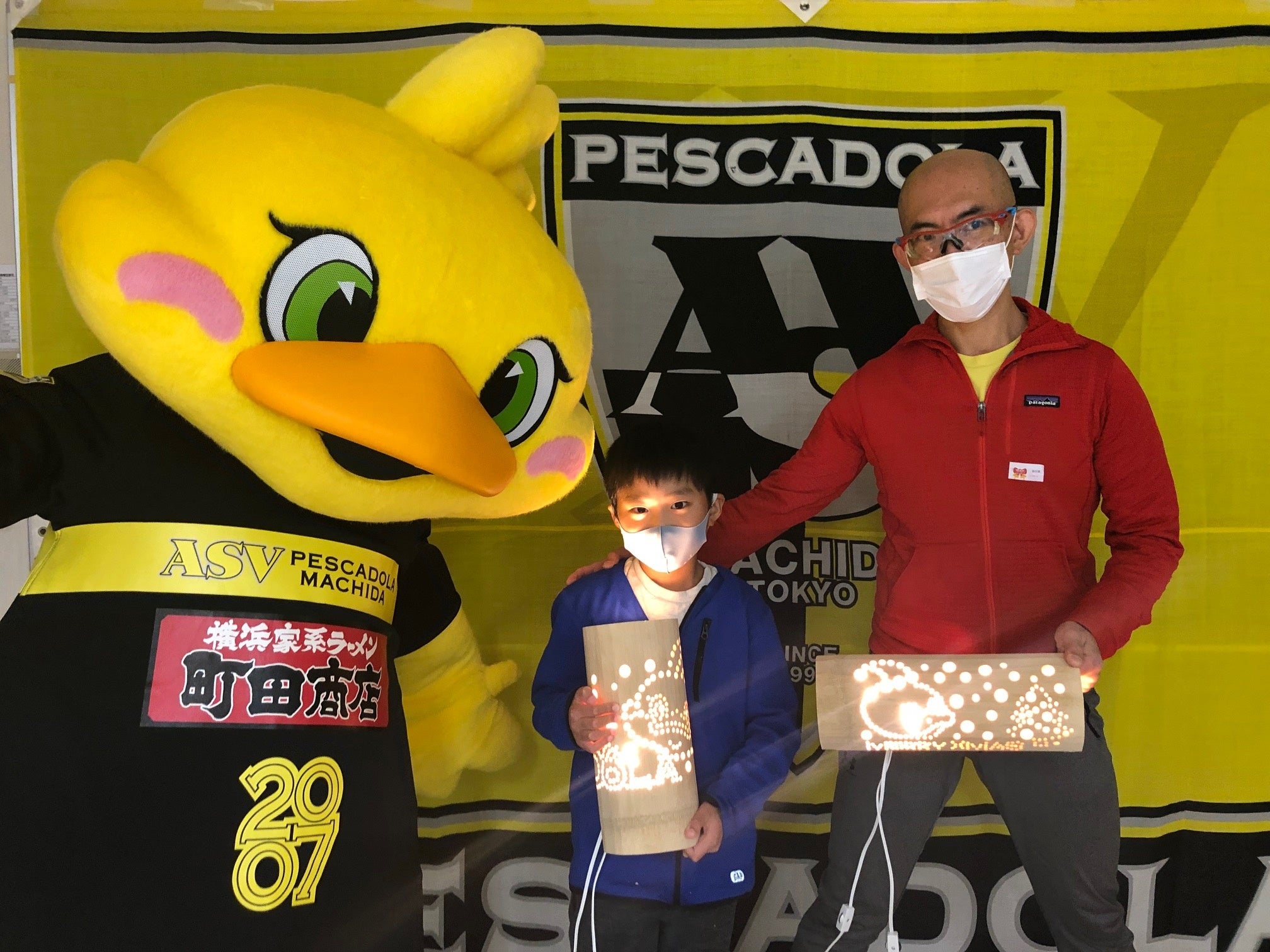 12月11日(土)町田市立総合体育館 中庭にて、ペスカドーラ町田のマスコット「ドーラくん」の竹灯籠を作成するワークショップを開催しました!!