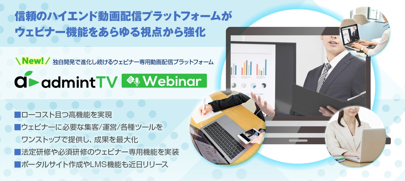 ウェビナー機能をあらゆる視点から強化する信頼のハイエンド動画配信プラットフォーム「admintTV Webinar」7月1日よりリリース!