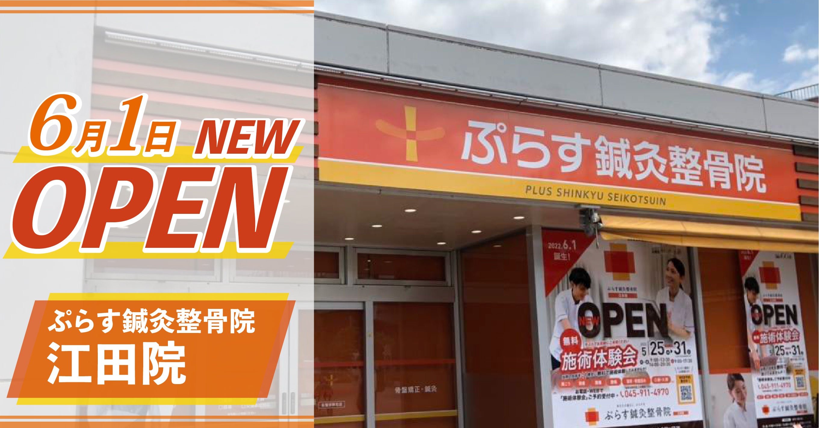 【名 称】 「ぷらす鍼灸整骨院 江田院」オープン記念!プレス向け体験会【期 間】 2022年6月6日(月)~6月10日(金)