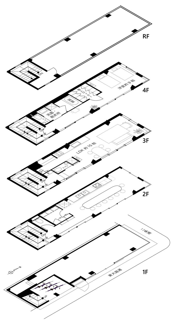 延床面積:1F:39.37㎡(11.90坪)2~4F 各37.06㎡(11.21坪)