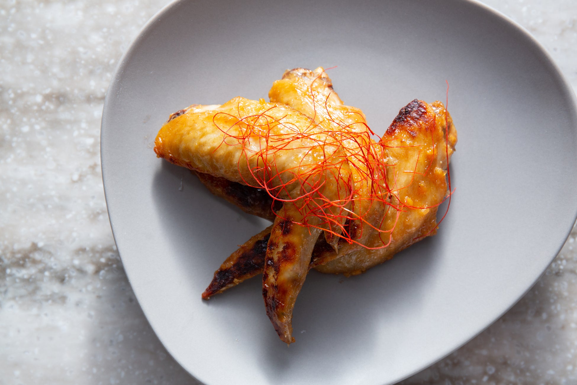 写真:アメリカで親しまれているバッファローウィングを味噌でアレンジ(税込1,320円)。お好みで七味・山椒七味・一味と一緒に。