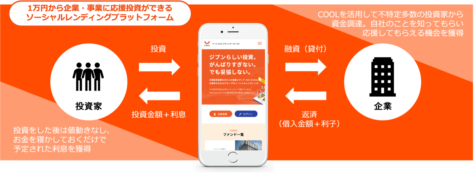 株式会社 COOL SERVICES は貸金業の登録を、株式会社 COOLは金融商品取引業における第二種金融商品取引業及び投資助言・代理業の登録をしており、ソーシャルレンディング(融資型クラウドファンディング)の運営に関しての経験と実績を有しております。