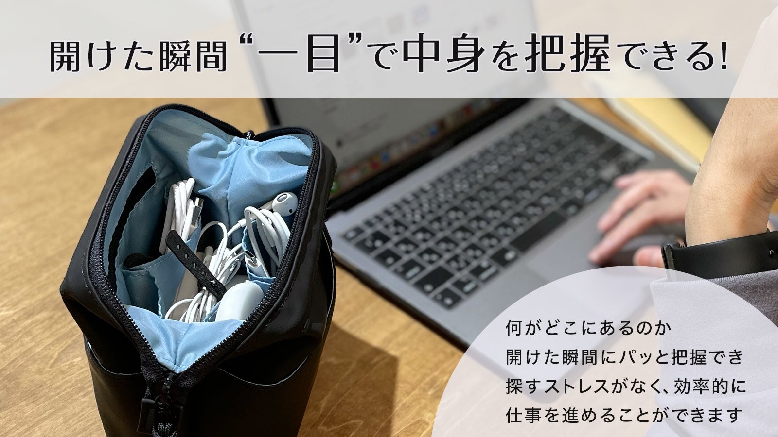 「ポケットの数が足りずに常に複数のポーチで道具を管理している」「カフェやコワーキングスペースなど、限られた机のスペースに置くことができる”適度な大きさ”のポーチが無い」「仕事の途中で毎回道具をカバンから取り出し、仕事の流れが悪くなる」と思っている方なら、きっと喜んでいただけるポーチです。