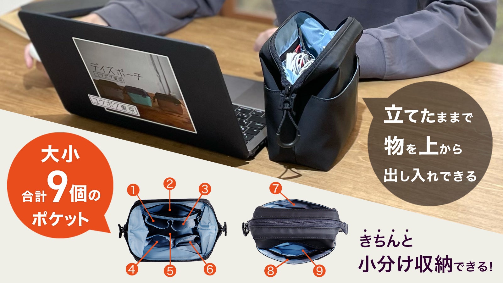 また、「デイズポーチ」は大小合わせて9つのポケットを備え、アイテムをそれぞれのポケットに収納することで“道具を探す”ストレスを抑えます。
