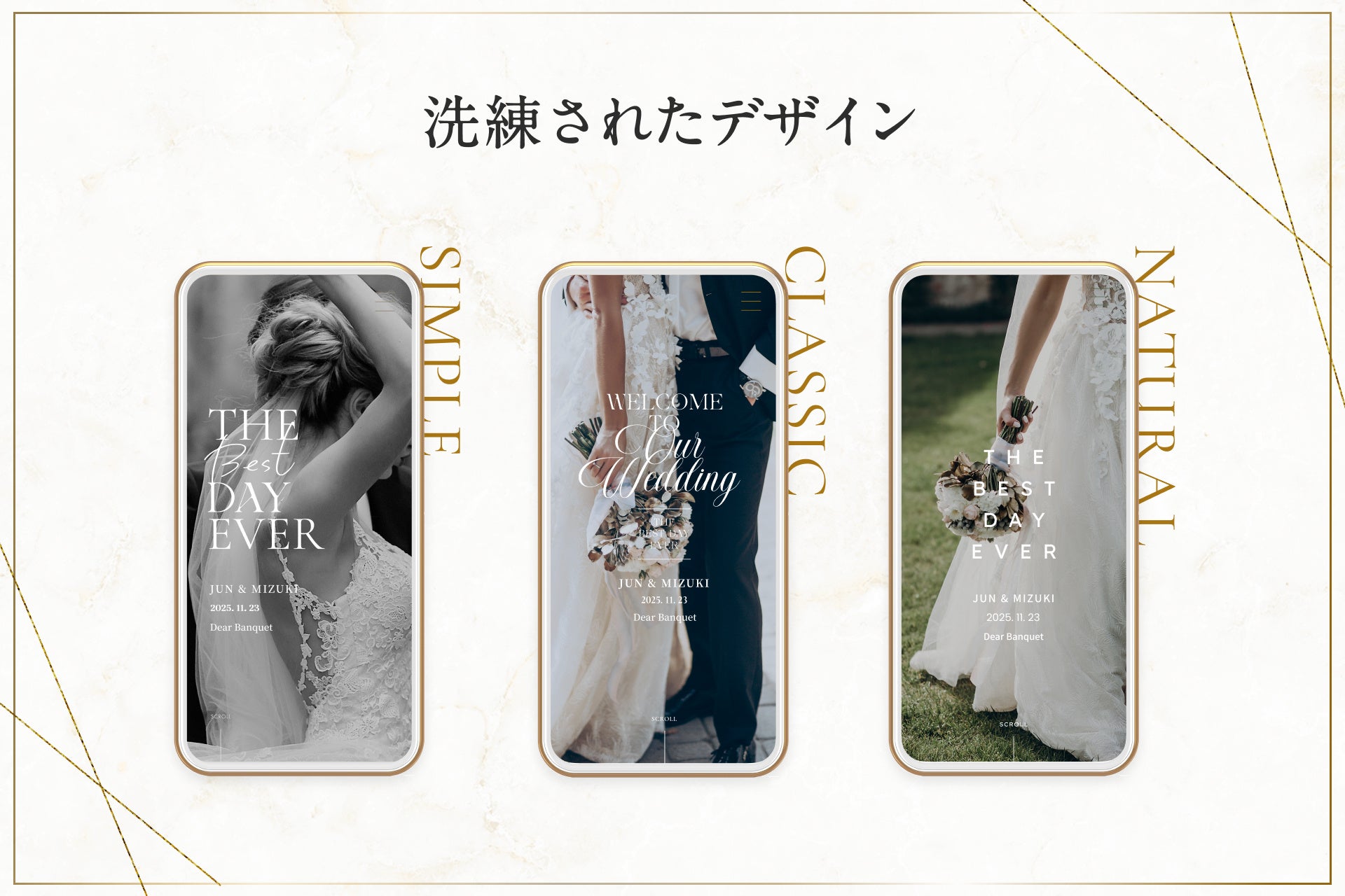2019年に「グッドデザイン賞」、2022年にはイタリアの世界的デザインコンペティション「A’DESIGN AWARD(エーダッシュデザインアワード)」を受賞をしたDear。席次表のデザインテンプレートは、結婚式の主役である新郎新婦お二人を引き立てることを第一に考えデザインをしました。トレンドを押さえた3テイストをラインナップしています。