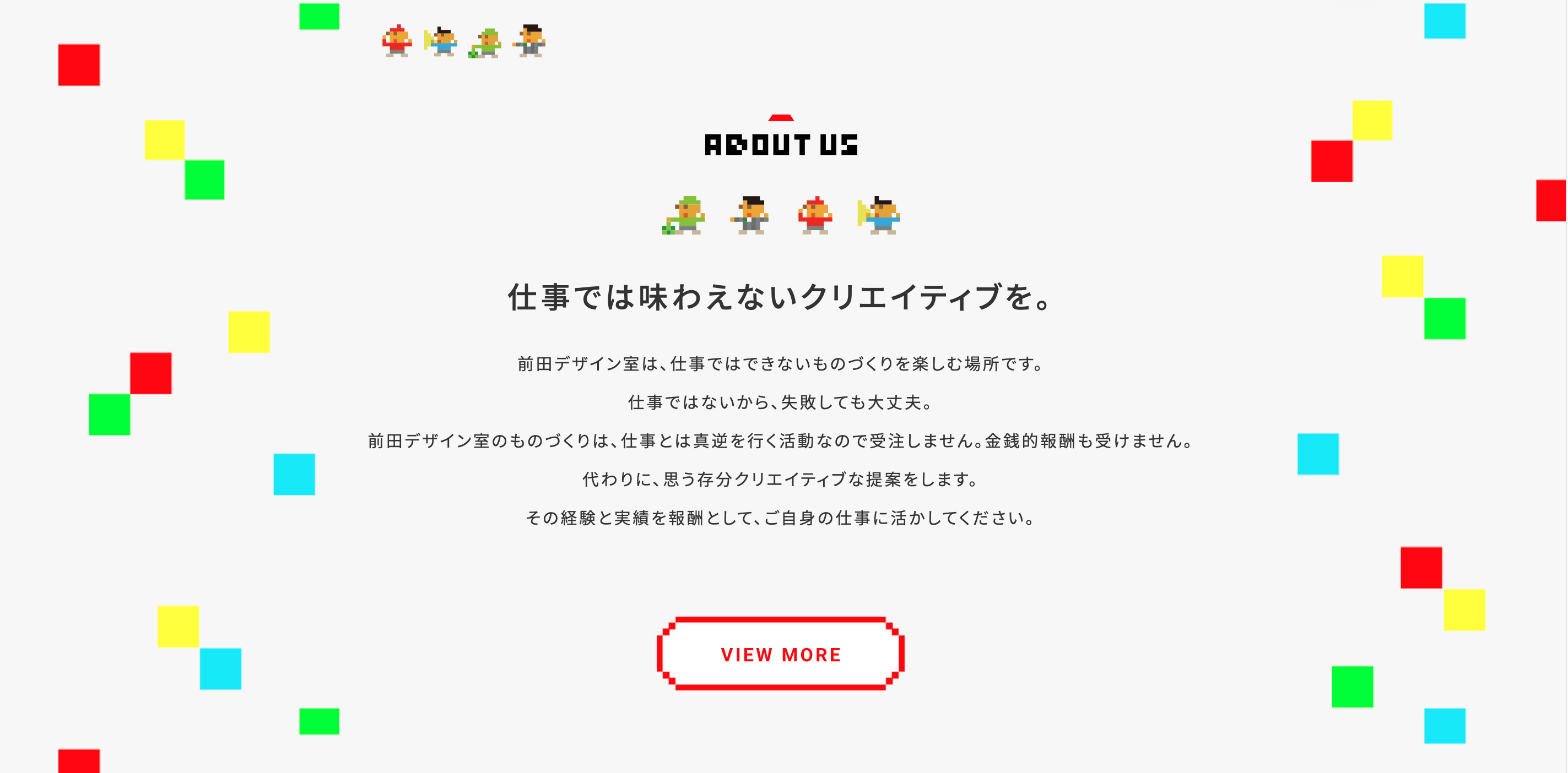 粗ドットは「前田デザイン室っぽさ」を象徴してきたものであり、現在でもWebサイトや入会ページ(CAMPFIRE community)など至る所に登場します。