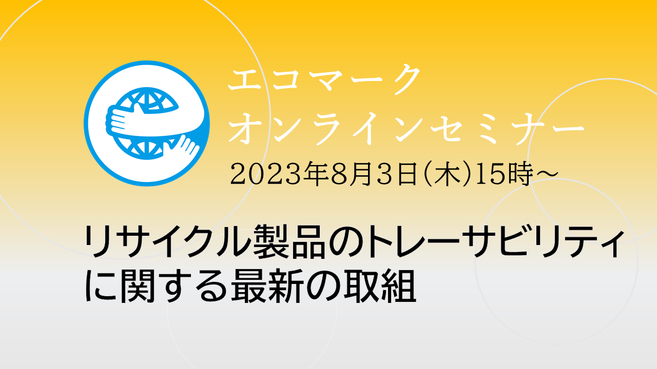 申し込み:エコマーク事務局 8月3日オンラインセミナー「リサイクル製品のトレーサビリティに関する最新の取組」ページ内申込フォームよりお申し込みください。