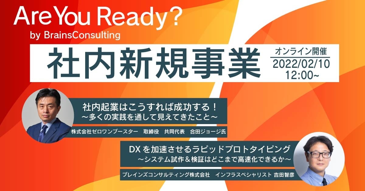 「AreYouReady?-社内新規事業-」をテーマにしたウェビナーをブレインズコンサルティング株式会社(本社:東京都中央区、代表取締役:平瀬正博)が2022年2月10日に開催いたします。