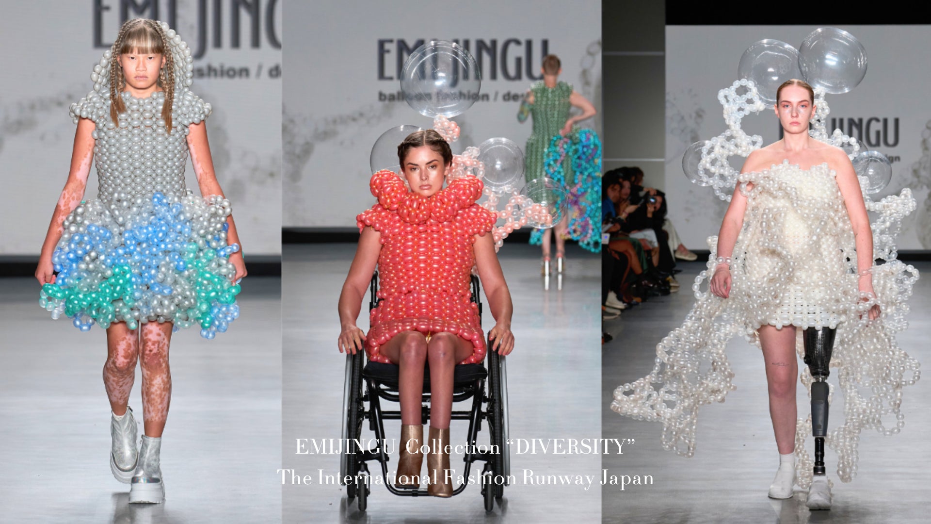 2025年9月、EMIJINGUはNew York Fashion Week 2026SSにて、バルーンを素材としたアートファッションコレクション「DIVERSITY」を発表しました。