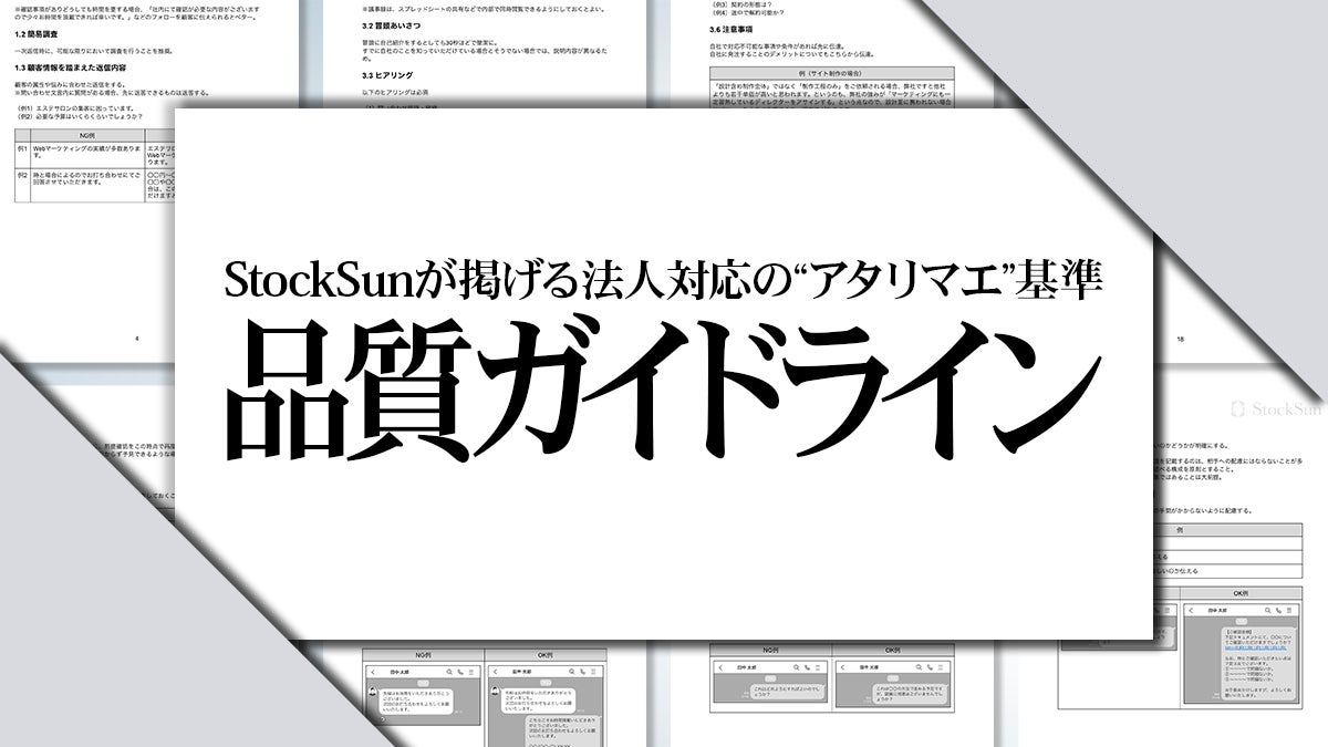 StockSunの法人対応における “アタリマエ” の基準を、100項目以上におよぶ具体的な行動指針として明文化したものです。