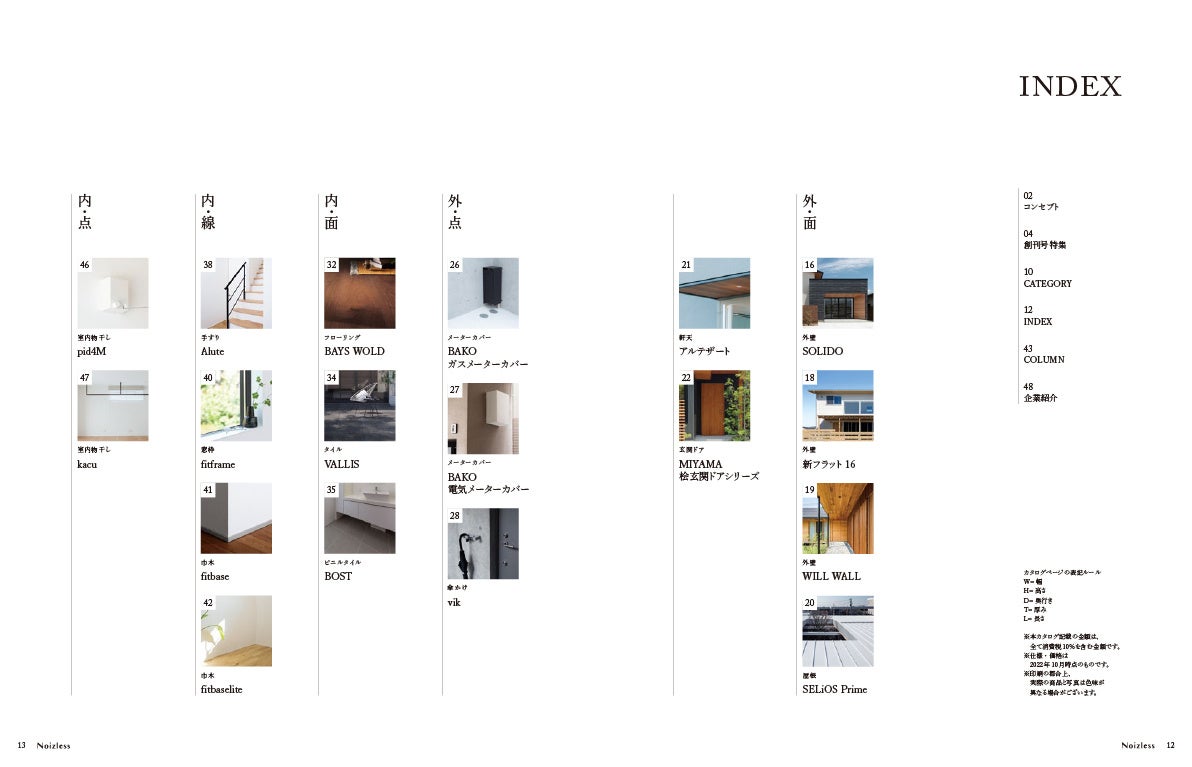 パートナー企業や工務店、ハウスメーカーのみなさまと、業界全体で新しい普通の家づくりを目指していきたいと思います。VOL.01では19カテゴリの商品を掲載しています。今後1年ごとに発刊し、徐々に掲載商品を増やしていく予定です。