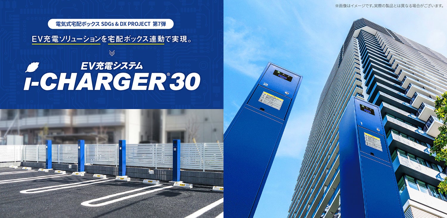 電気式宅配ボックス SDGs & DX PROJECT 第7弾はEV充電システムi-CHARGER30の販売開始。集合住宅のEV充電インフラ整備に貢献します。