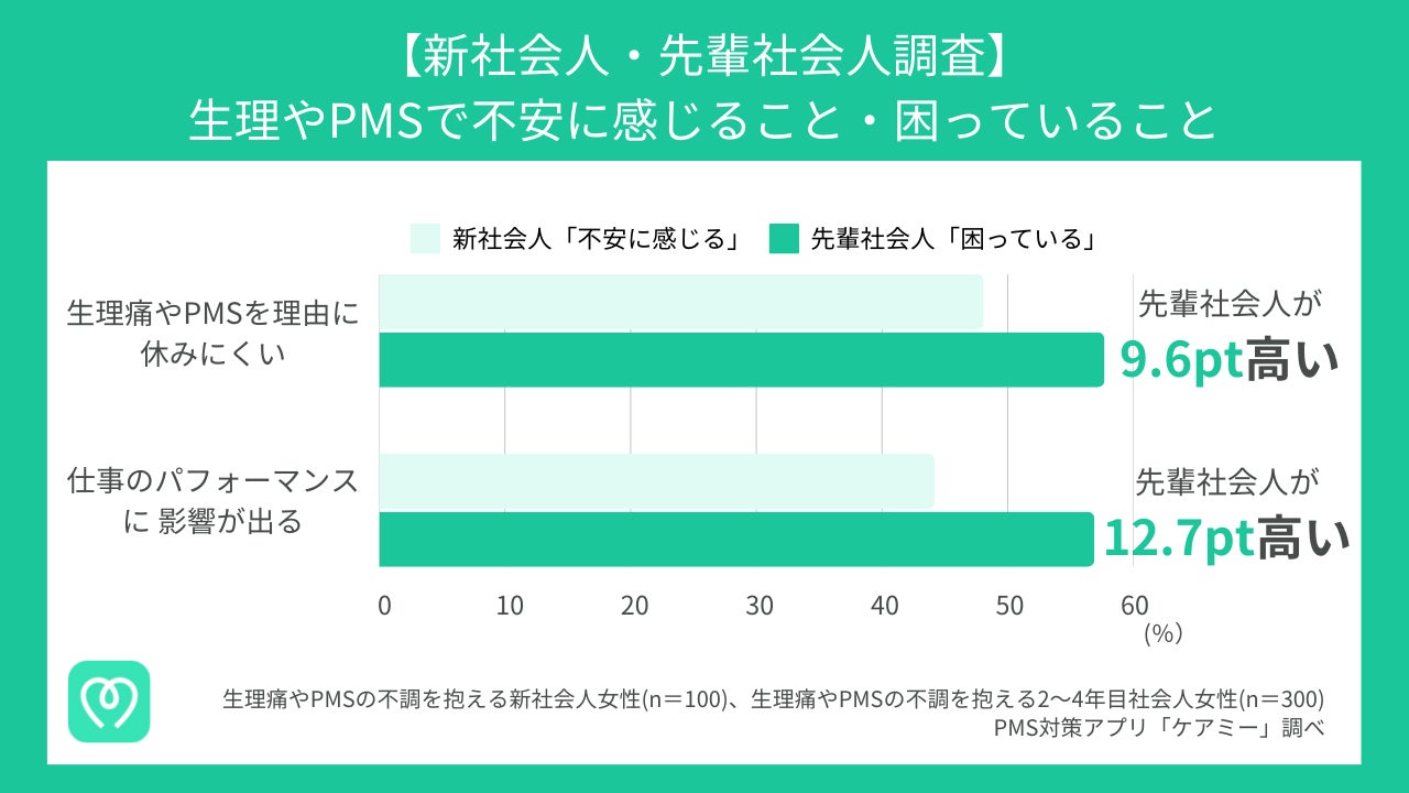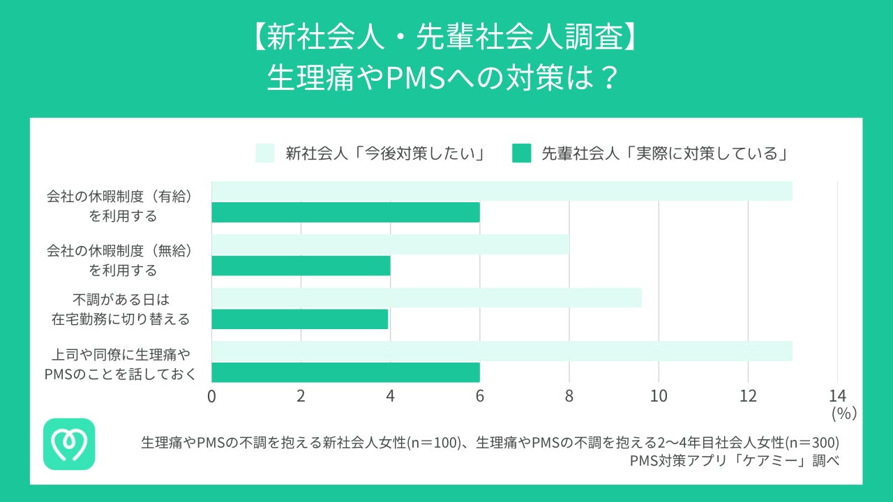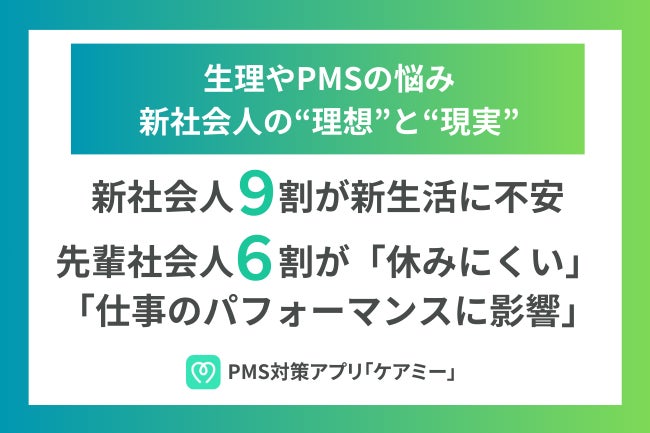 休暇制度利用や周囲の理解は、理想と現実にギャップ。PMS対策アプリ「ケアミー」が新社会人と先輩社会人に「女性の健康と仕事に関する意識調査」を実施