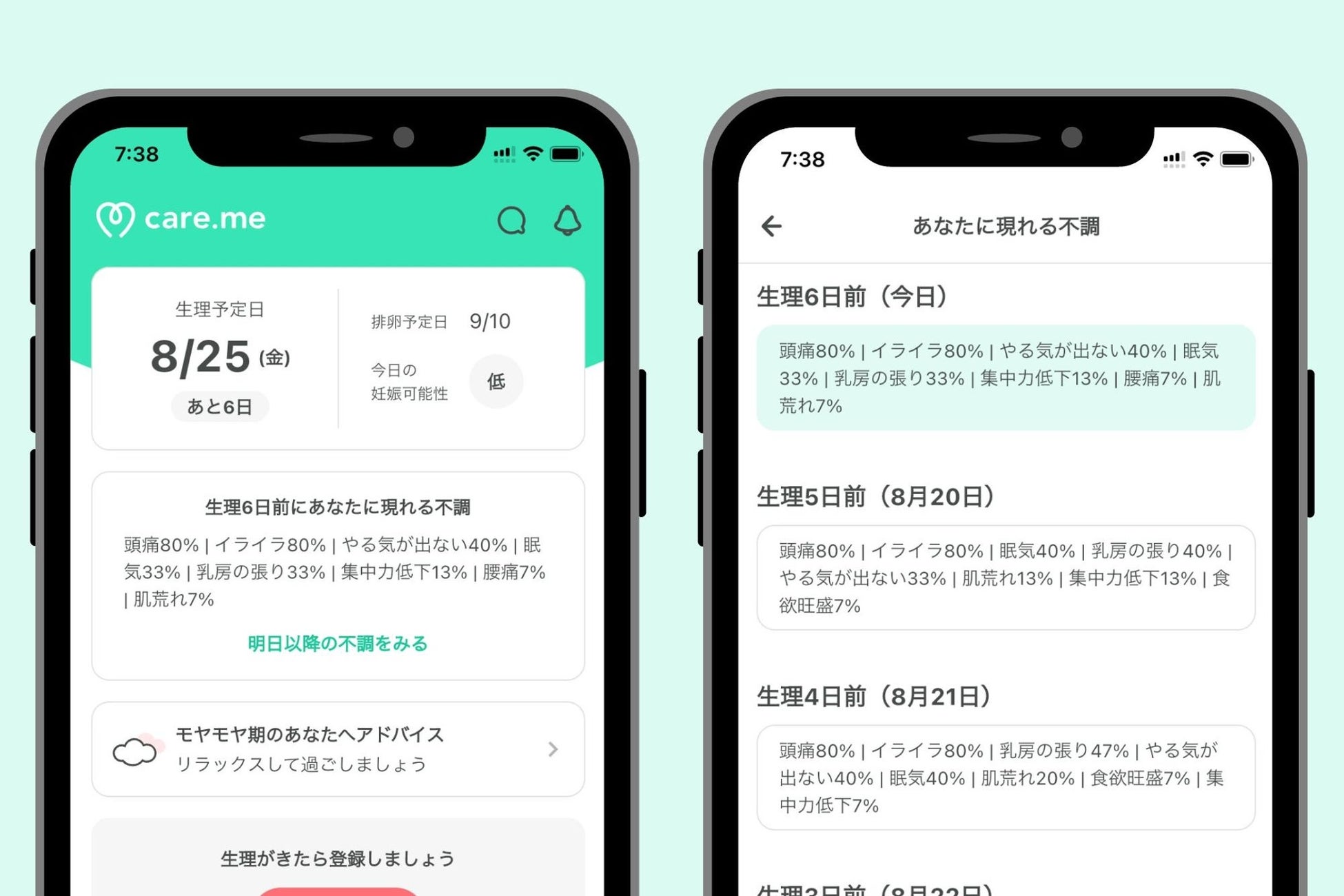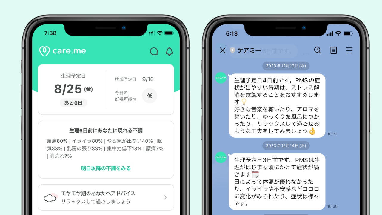 (※1)プレスリリース「PMSの対策アプリ「ケアミー」利用者数60万人を突破!憂鬱な生理前を変えるフェムテック、男性からも支持」(https://prtimes.jp/main/html/rd/p/000000004.000042562.html)