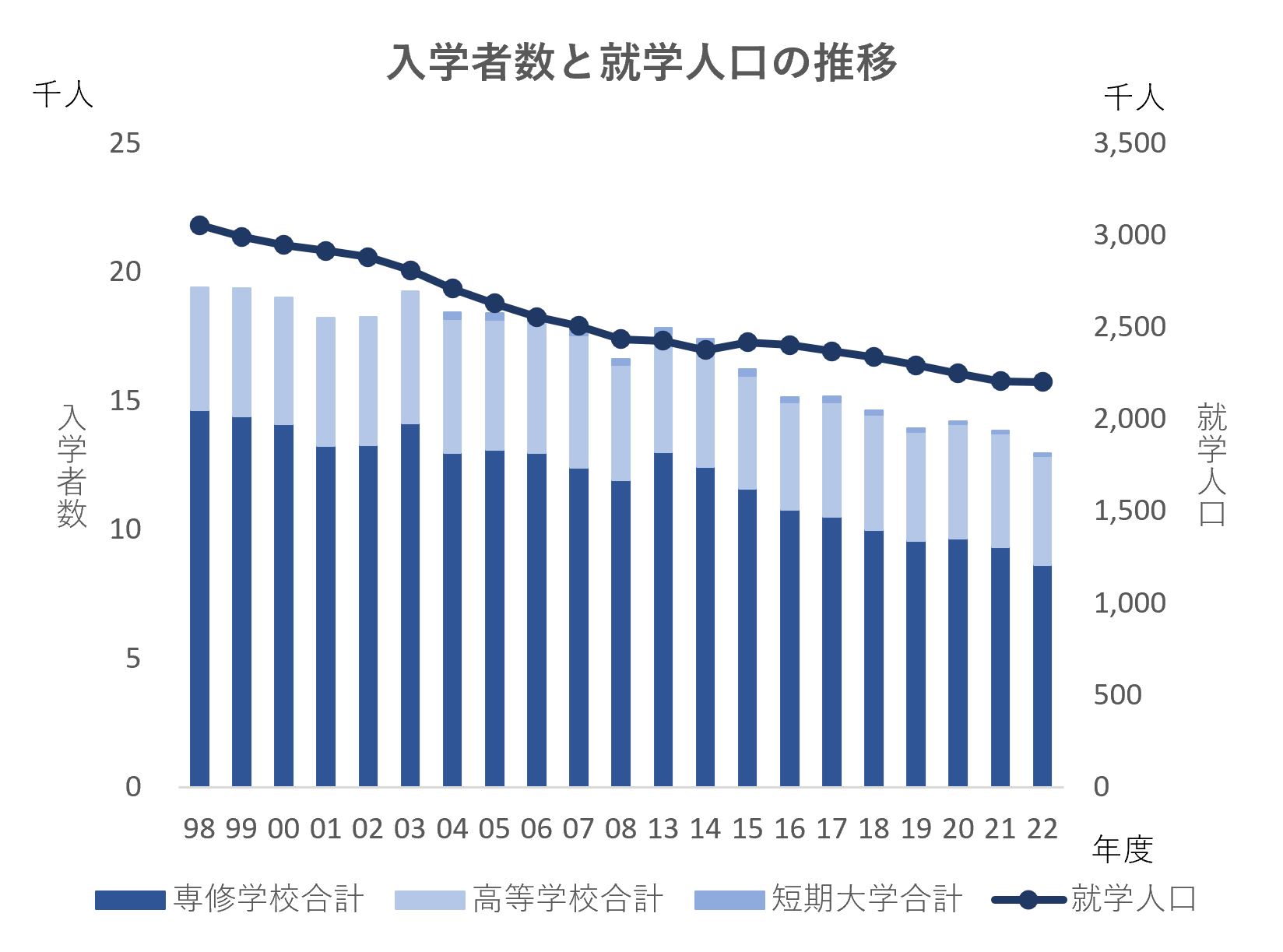 調理師学校の入学者は、就学人口の低下に伴い減少してきていましたが、ここ数年は就学人口の低下ペースよりも緩やかになっていました。