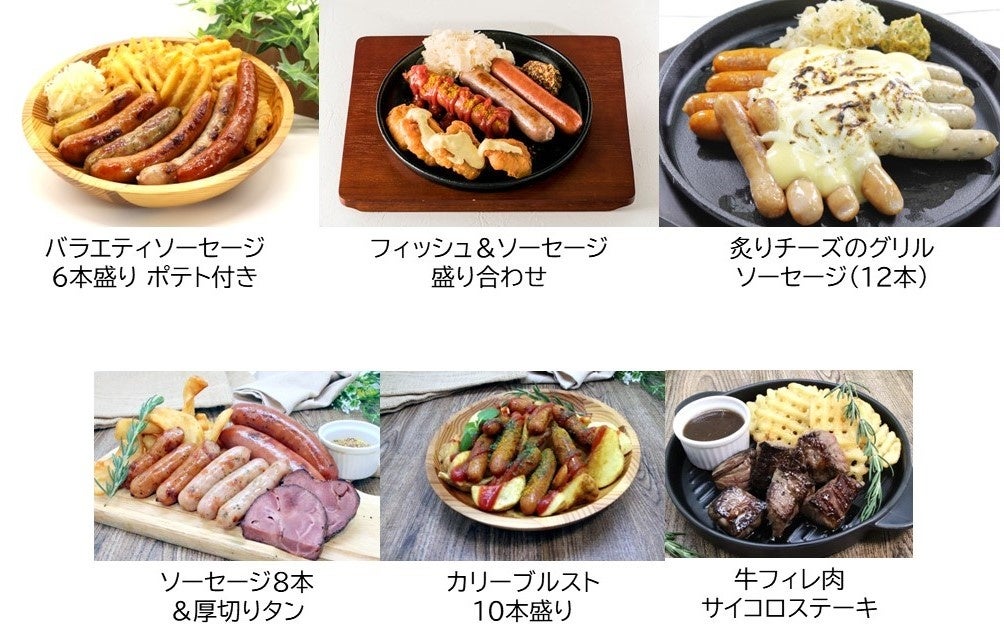 ・大人気の6種類のソーセージが味わえるお得な盛り合わせ!「バラエティソーセージ6本盛り ポテト付き」