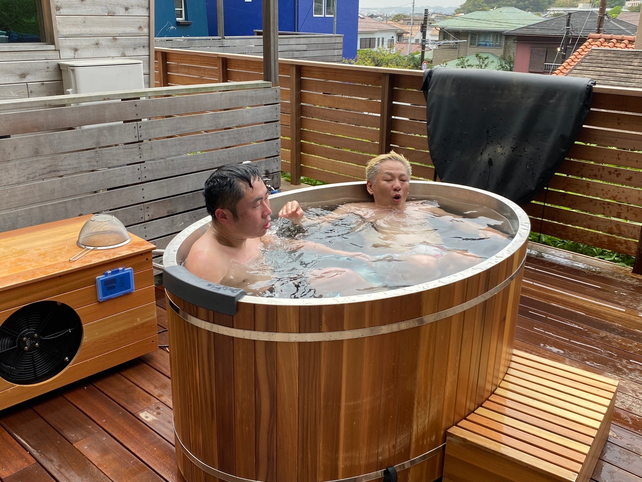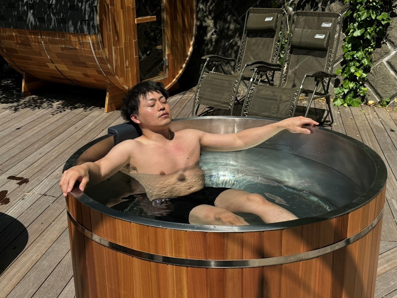 神奈川県葉山町の展示場での様子(バレルサウナ、チラー水風呂)